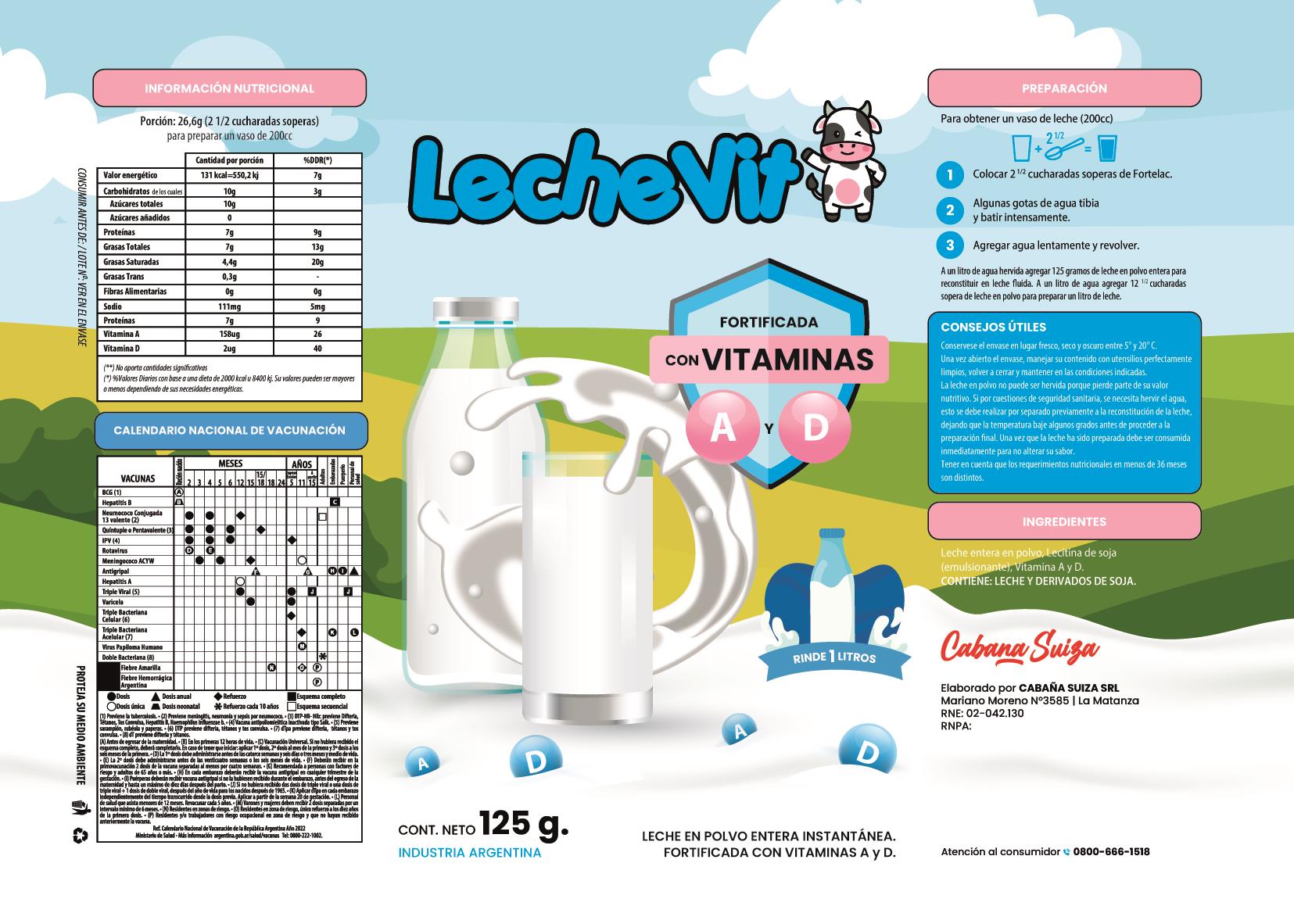 Descripción: LECHE EN POLVO ENTERA INSTANTÁNEA FORTIFICADA CON VITAMINAS A Y D Leche Instantánea Fortificada con Vitaminas A y D LECHE VIT 125,00 GRAMOS (GR)