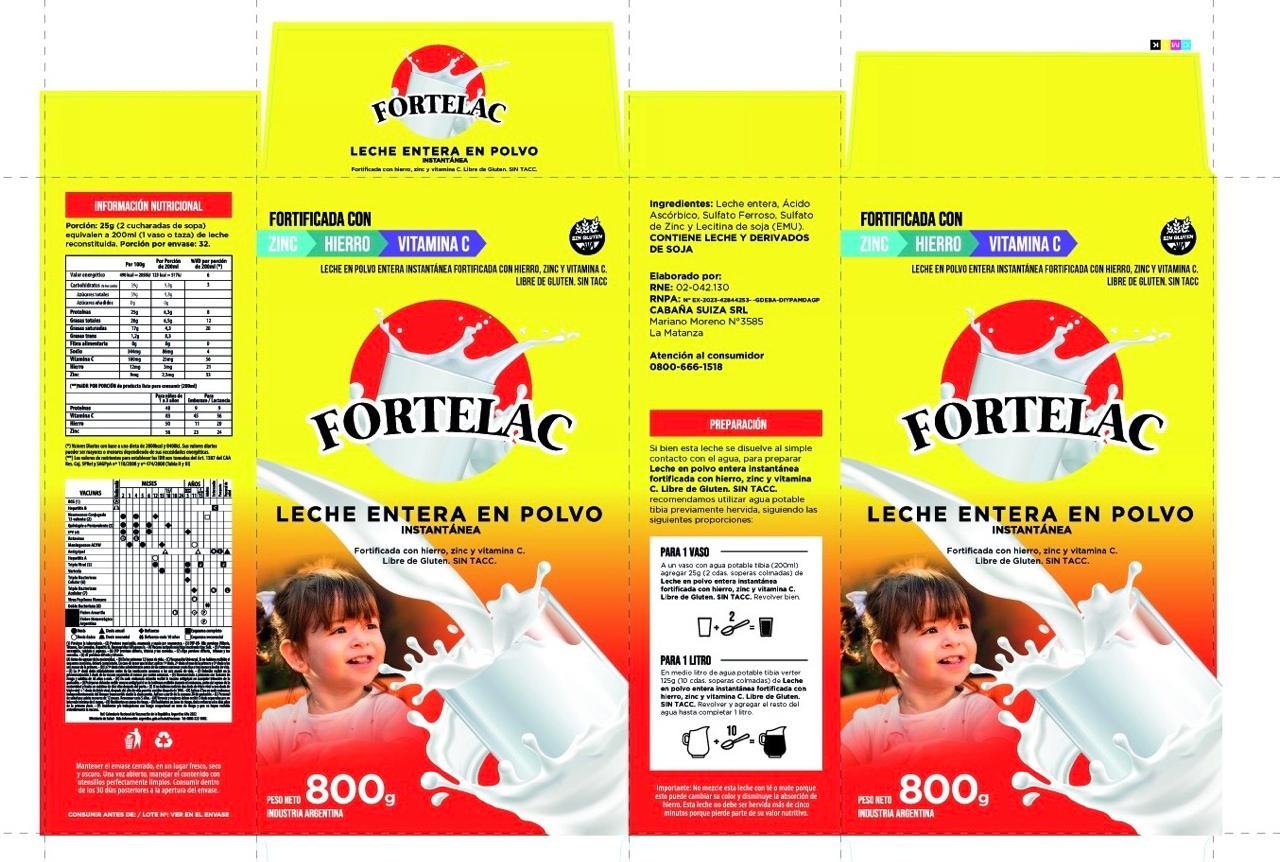 Descripción: LECHE ENTERA EN POLVO INSTANTÁNEA FORTIFICADA CON HIERRO, ZINC Y VITAMINA C. LIBRE DE GLUTEN SIN TACC FORTELAC 800,00 GRAMOS (GR)