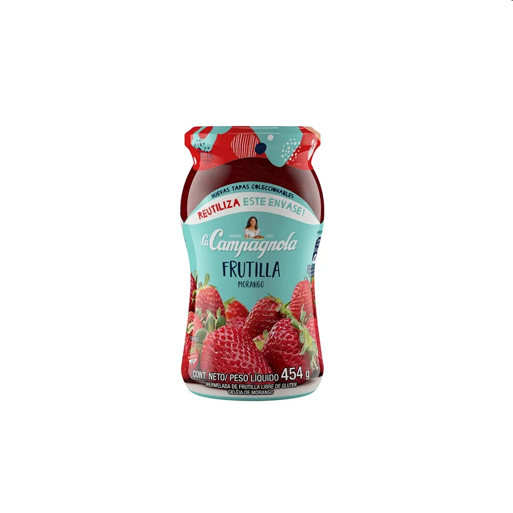 Frutillas (fresas), azúcar, jarabe de glucosa, gelificante pectina, acidulante ácido cítrico, conservador sorbato de potasio, antiespumante ins 900